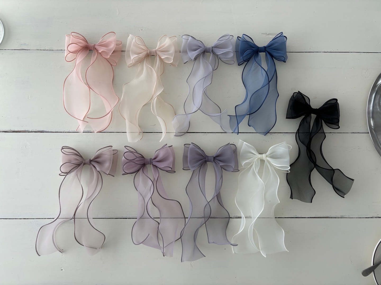 쉬폰소재로 제작되어 볼륨감있는 사랑스러운 롱 리본이예요.